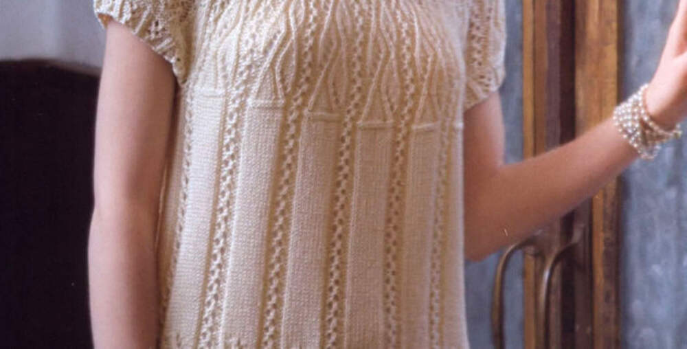 Женский пуловер спицами. Пуловер очень женственный и романтический, потому что имеет слегка расклешенный низ и рукава три четверти с оборками. Ажурный узор пуловера понравиться любой женщине, которая...